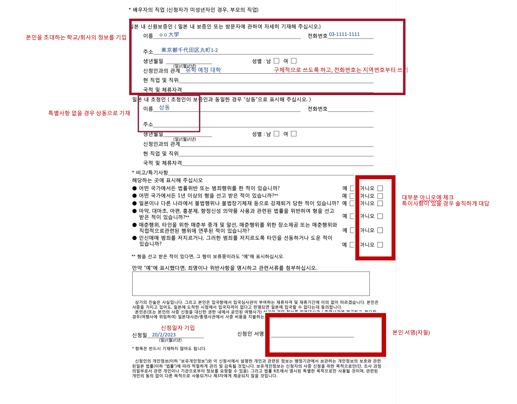 저도 비자 신청을 할 때 뭘 어떻게 적어야 하는지 검색해가며 작성을 했습니다.